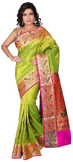 Green Colour Paithani Saree / It comes with an attached blouse.